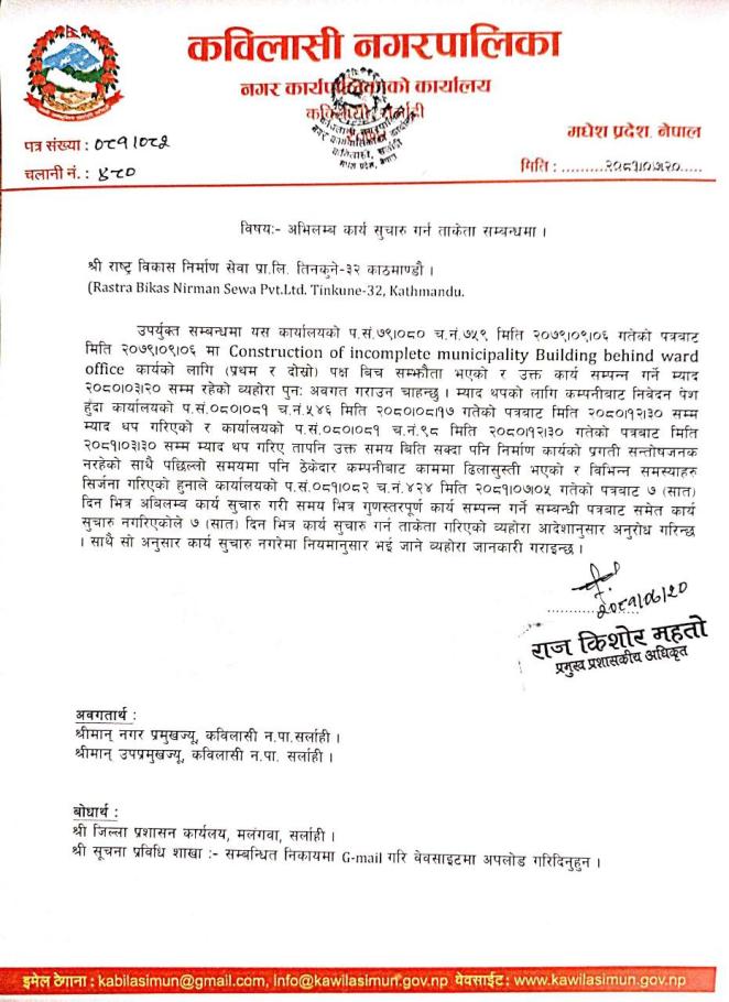 कविलासी नगरपालिका, नगर कार्यपालिकाको कार्यालय