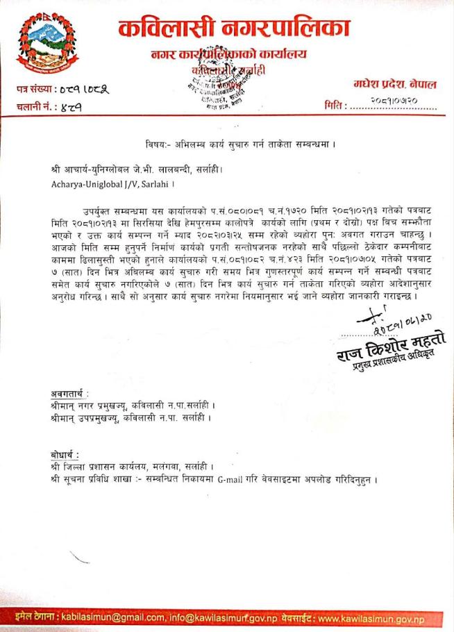 » अभिलम्ब कार्य सुचारु गर्न ताकेता सम्बन्धी सूचना |