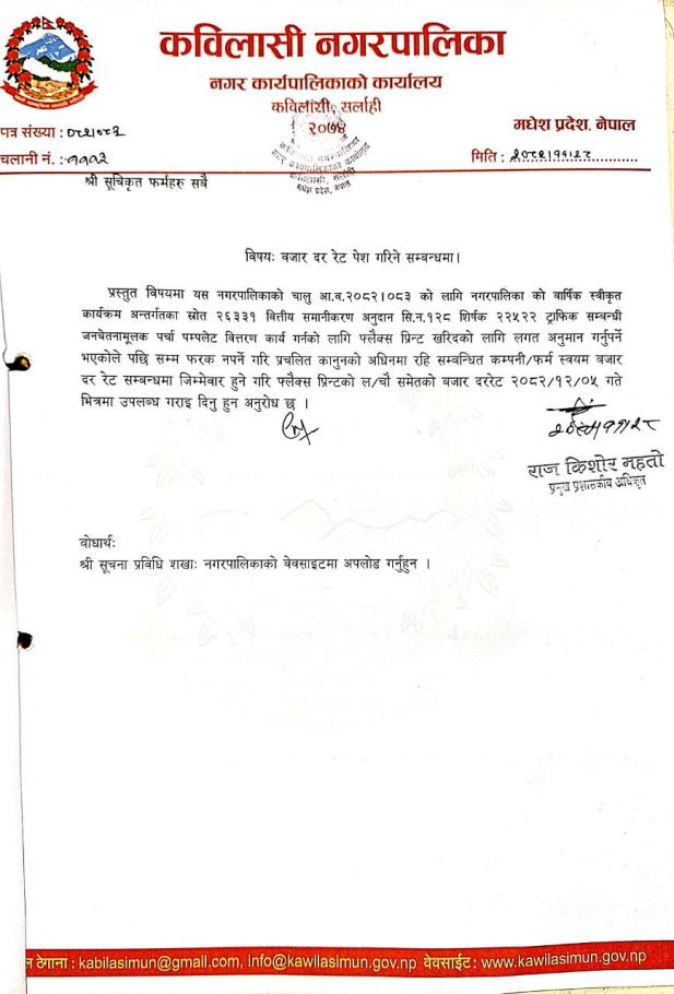 ट्राफिक जनचेतनामूलक कार्यक्रमको बजार दररेट पेश गर्ने सम्बन्धी सूचना ।