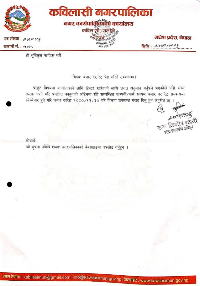 बजार दर रेट पेश गरिने सम्बन्धी सूचना