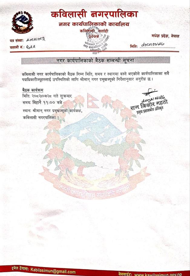 » नगर कार्यपालिकाको बैठक सम्बन्धी सूचना |