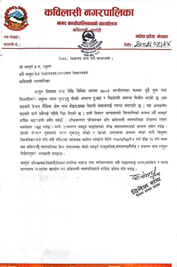 » बिद्यालय बन्द गर्ने सम्बन्धी सूचना |