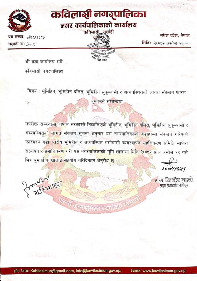 भूमिहीन, भूमिहीन दलित, भूमिहीन सुकुम्बासी र अव्यवस्थितको लागत संकलन फारम बुझाउने सम्बन्धी सूचना |