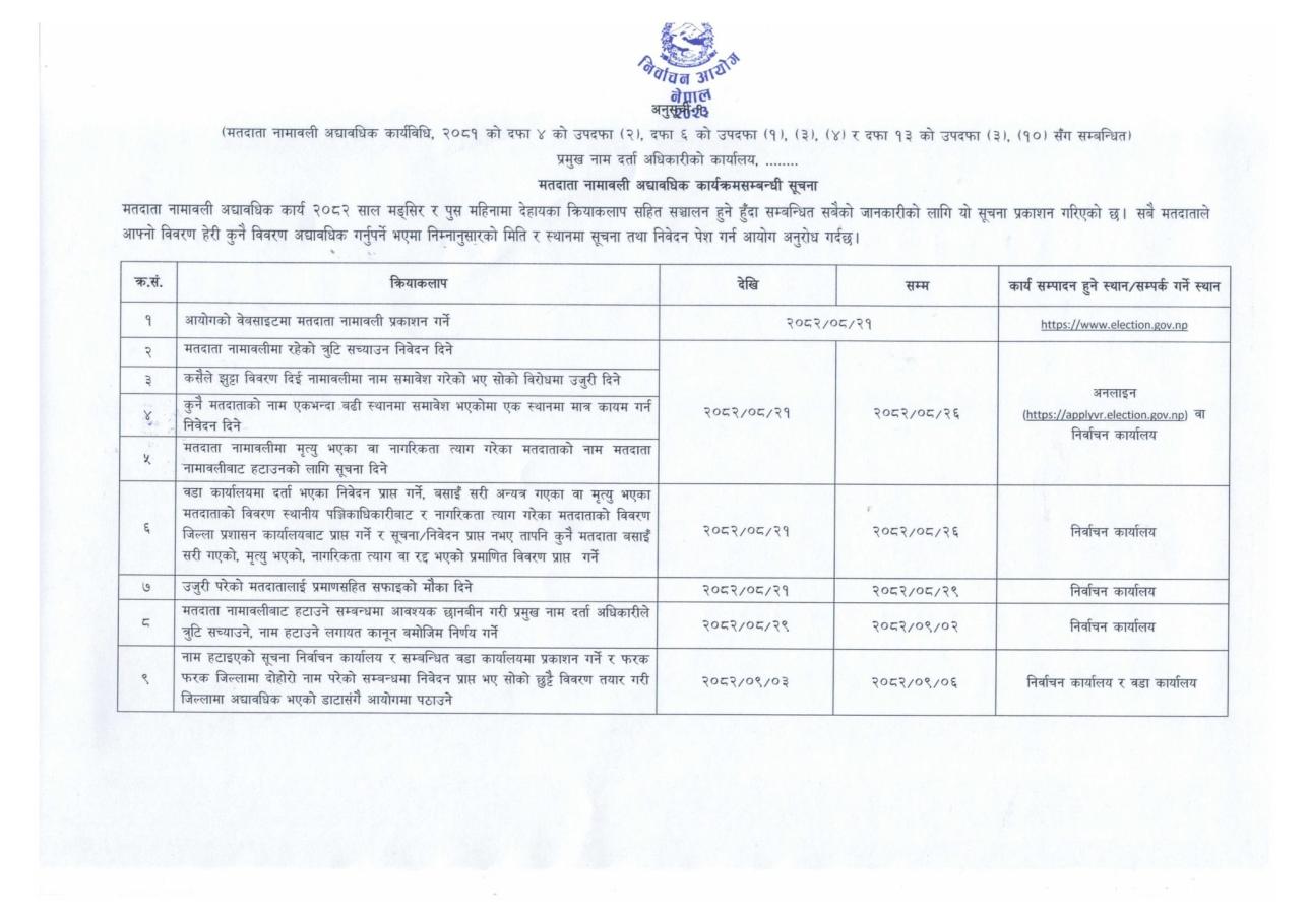 मतदाता नामावली अद्यावधिक (दाबी विरोध) कार्यक्रम, २०८२ सम्बन्धी जिल्ला निर्वाचन कार्यालय सर्लाहीको सूचना ।।